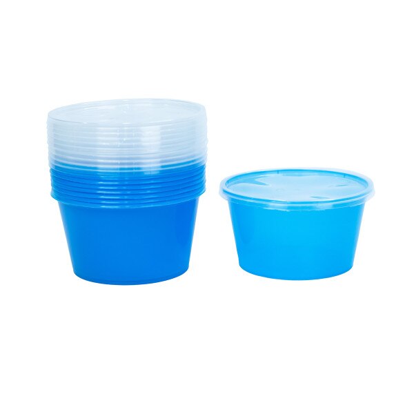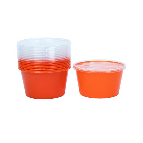 Round container size 450ml from the Multiuse Range in variety of colours. Durable and sturdy for everday use. Tight sealing lids for leak proof storage. Excellent for kitchen use, restaurants and travel. Reusable, easy snap lid, freezer safe and microwavable