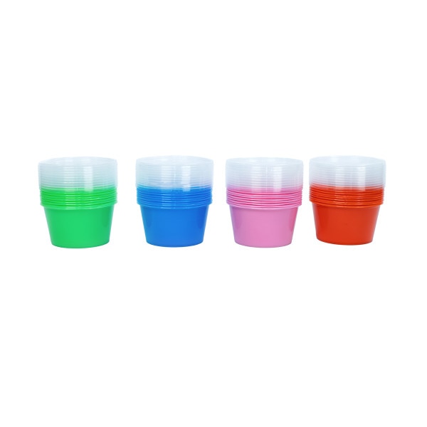 Single colour bottom with transparent cover per pack of 10. 4 colours in master nylon with 3 packs per colour.