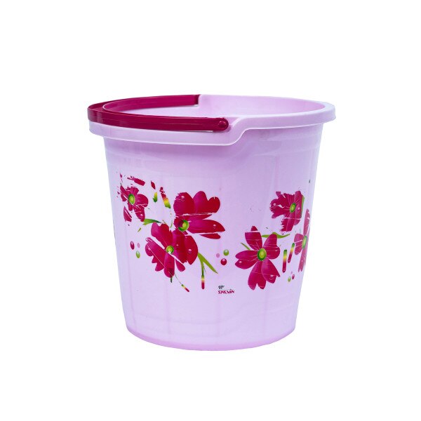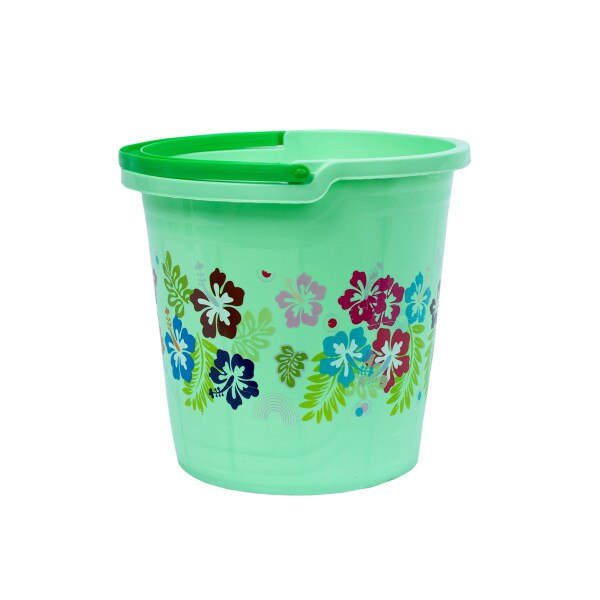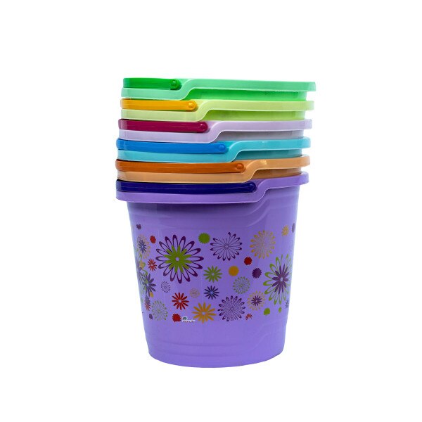 11 Litre capacity bucket with plastic handle without cover. The beauty lies in the variety of colours and prints.
