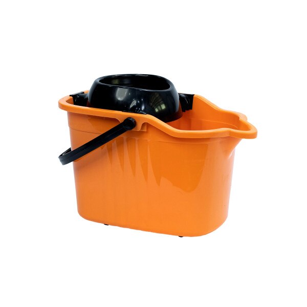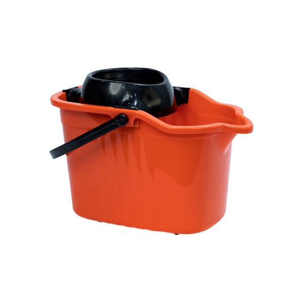 Made from durable, heavy-duty plastic, this exceptional mop bucket is designed for lasting use and comes with tires for easy mobility. This mop bucket features a detachable ringer for removing excess mop water to prevent drips and puddles. It includes a movable plastic handle that is contoured to fit your palm and makes for easy carrying and portability.