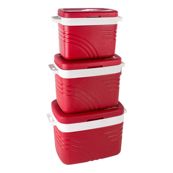 Available in 3 colours and sold in multiples of 3 such that equal quantities of each colour are delivered allowing to make sets with the other sizes in the same cooler range.