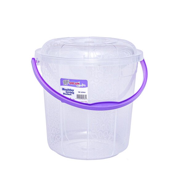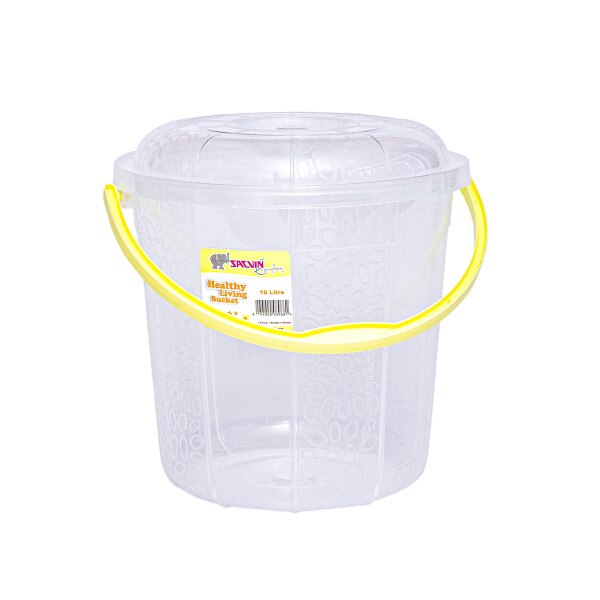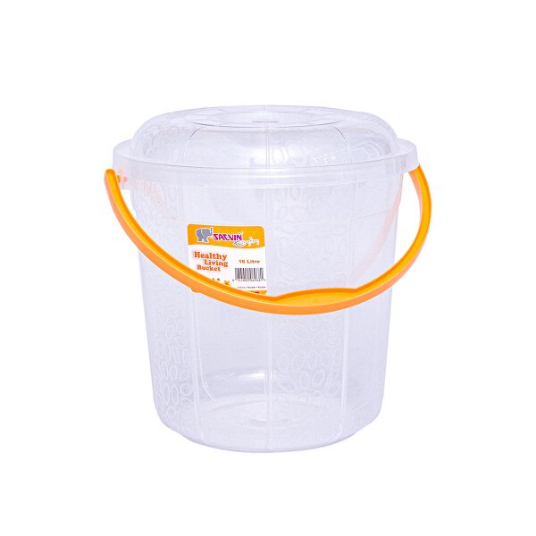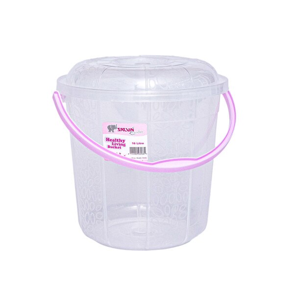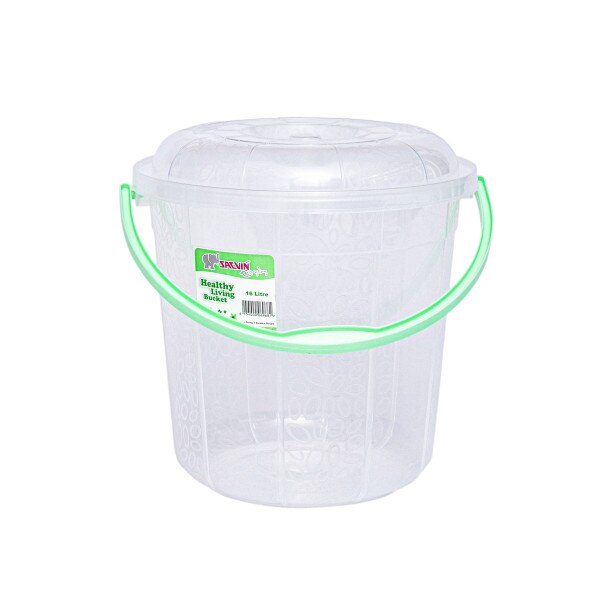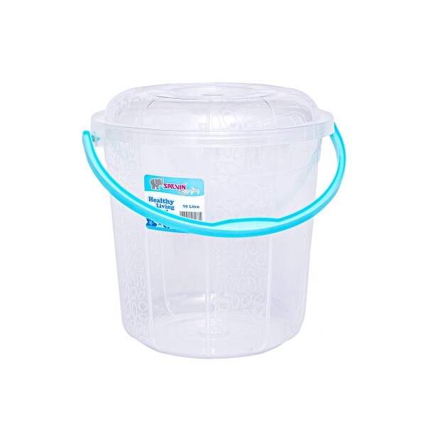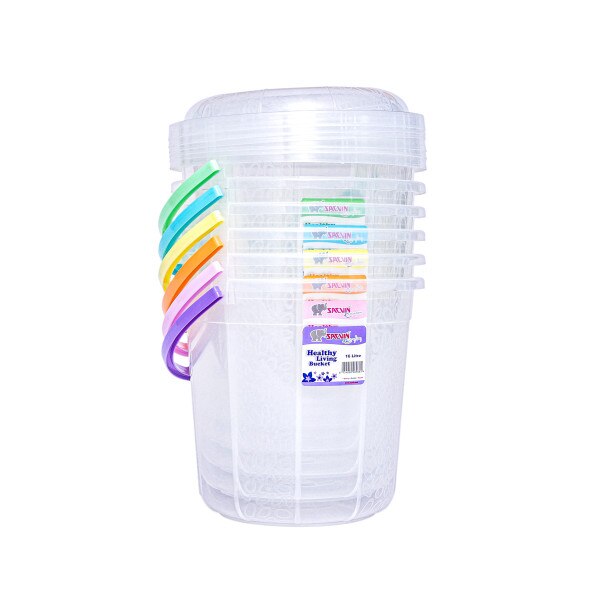 16 Litre capacity round transparent bucket with milky way etching design with cover and a plastic handle. Stay organized with this cute bucket at home, office, or in retail shops. Available in six beautiful colour handles per bag.