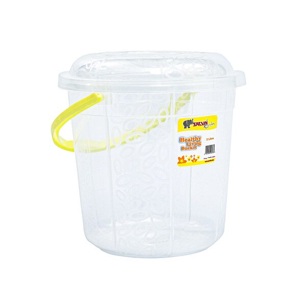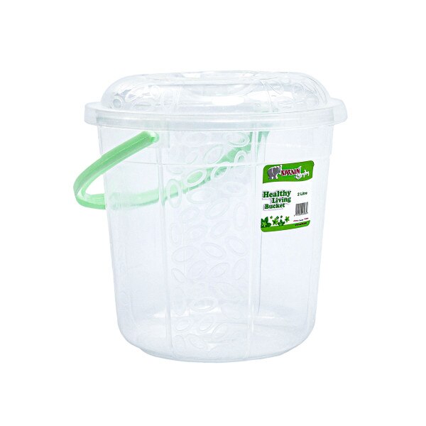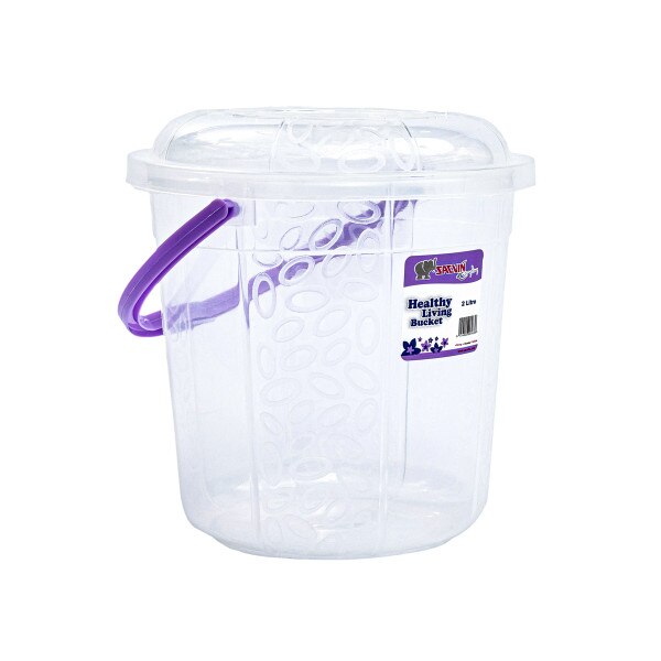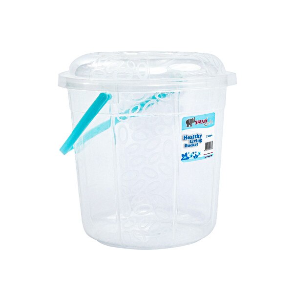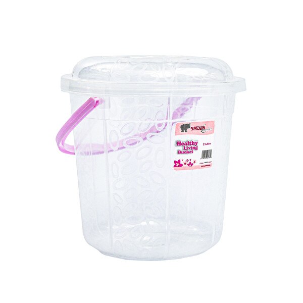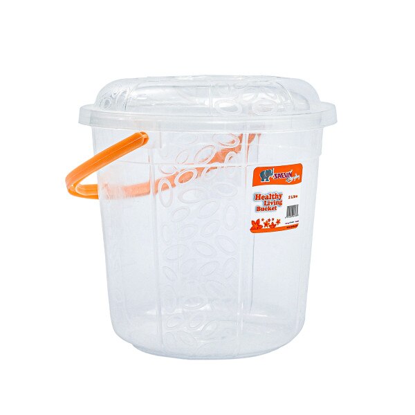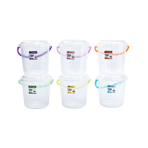 2 Litre capacity round transparent bucket with milky way etching design with cover and a plastic handle. Stay organized with this cute bucket at home, office, or in retail shops. Available in six beautiful colour handles per bag.