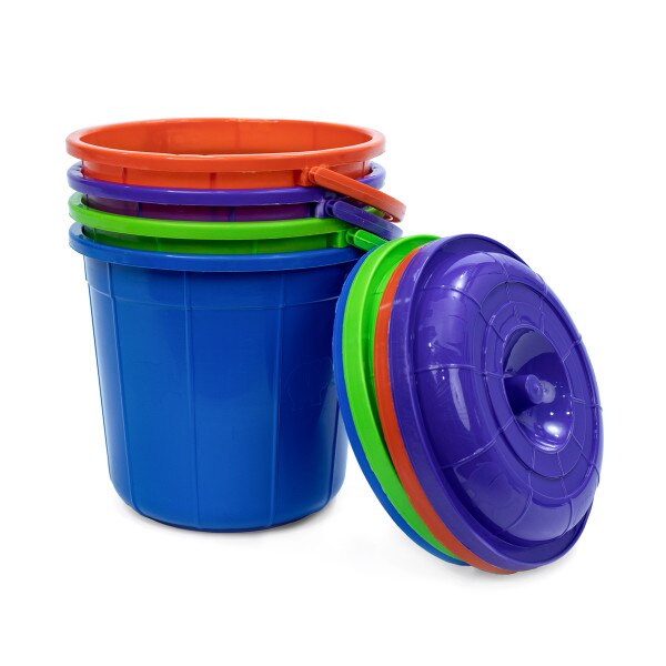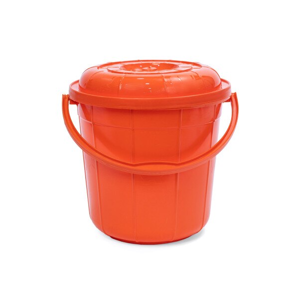9 Litre capacity round bucket in striking deep colours with elephant etching design with cover and a plastic handle. Stay organized with this cute bucket at home, office, or in retail shops. Sticker colour matches bucket colour.