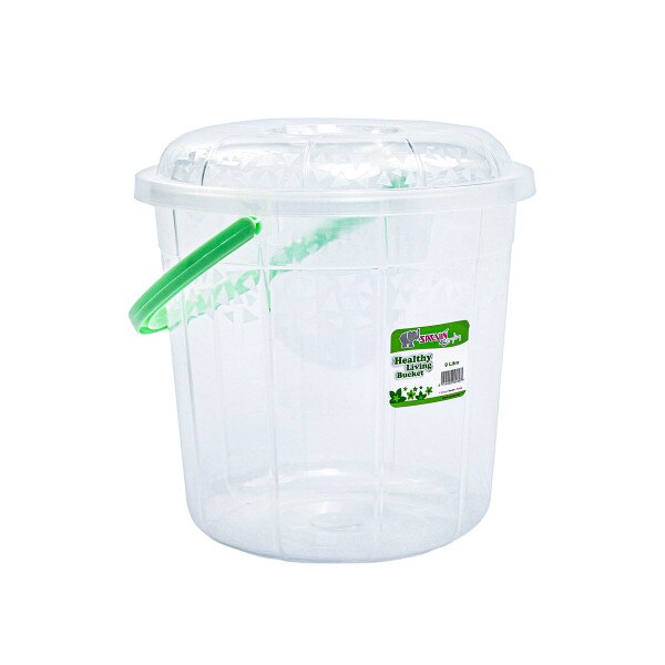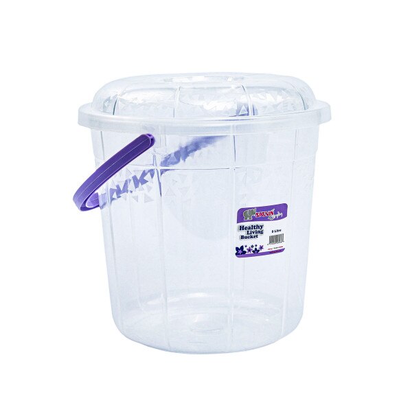 9 Litre capacity round transparent bucket with milky way etching design with cover and a plastic handle. Stay organized with this cute bucket at home, office, or in retail shops. Available in six beautiful colour handles per bag. |