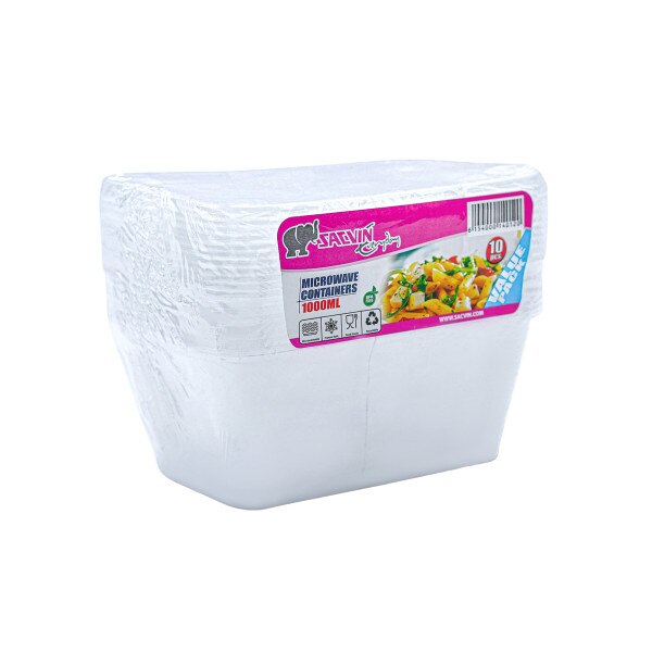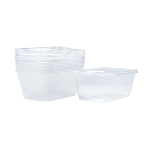 High quality and reusable, these 1000 ml capacity rectangle containers from the Microwave Containers Range are lightweight and stackable for easy storage and transparent for easy viewing. Lids that seal perfectly will keep your food fresh and no leaks. Freezer-safe and microwave-safe. 10 piece pack.