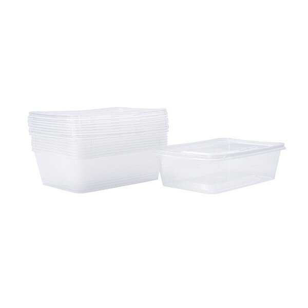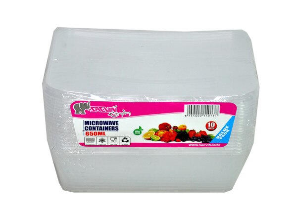 High quality and reusable, these 650 ml capacity rectangle containers from the Microwave Containers Range are lightweight and stackable for easy storage and transparent for easy viewing. Lids that seal perfectly will keep your food fresh and no leaks. Freezer-safe and microwave-safe. 10 piece pack.