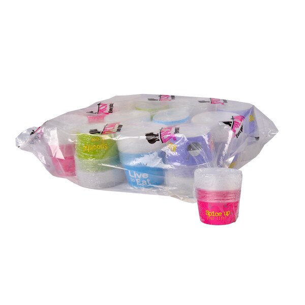These 450ml capacity round containers are washable, reusable and ideal for food storage or for take away. These containers have fun, exciting labels printed and are great when used to package gifts and party favors. Easy snap lid, freezer-safe, microwavable, and leak proof.