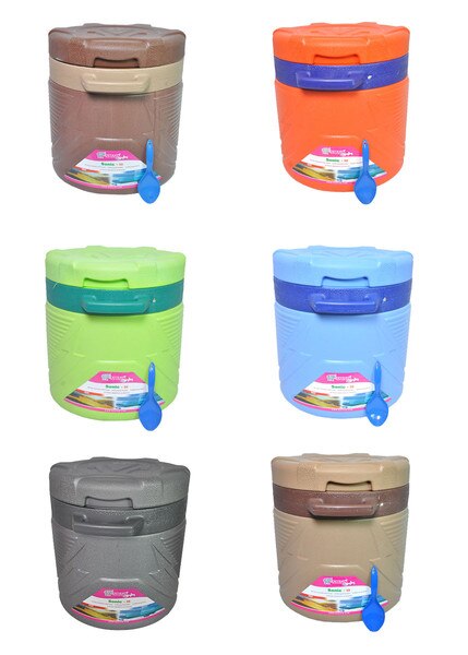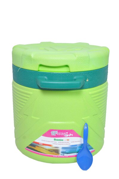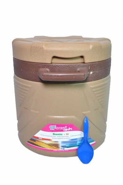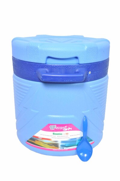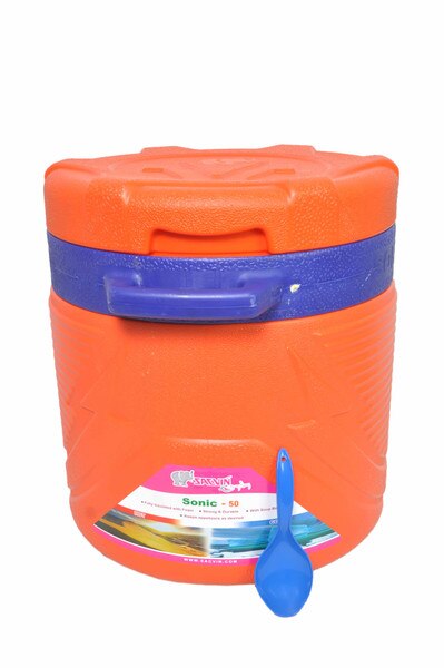 The Sonic - 50 is the ideal insulated Food or Beverage Storage container. The foam insulation is capable of keeping the contents hot or cold for several hours, and the attached side handles make the contaner easier to carry. The extra serving spoon makes this the ideal Kit to serve warm food at family gatherings, events, or even road-side eateries. Available in various colours with contrasting cover and handles.