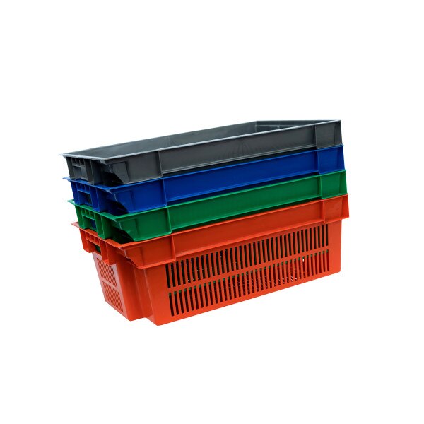 Sturdy rectangular crate that can be used for storing multiple grocery and non grocery items. Ideal for industrial use or for transporting products. Stackable so it nests inside each other to save space for storage and transport when empty and when full, reverse it and it will stack on top of each other so that items don't get squashed.